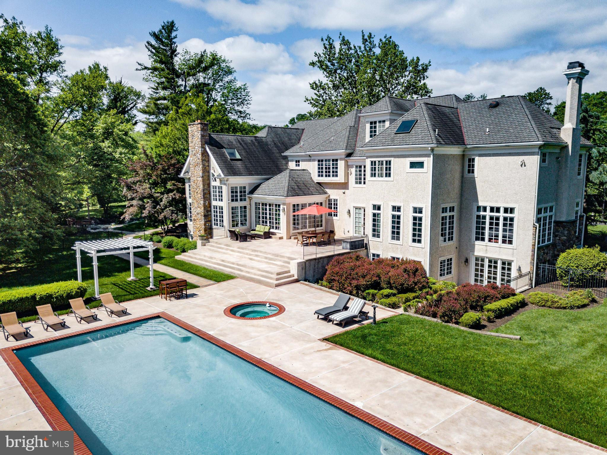 Welcome to 1049 McKean Road, the crowning jewel of Horsham Twp - where timeless elegance meets modern luxury in this extraordinary custom-built estate nestled on 14.62 whimsical, park-like acres - only 2 acres are grassy and require maintenance, with the remainder being wooded. A long private drive and charming wooden bridge set the tone for the serene lifestyle that awaits. Framed by meticulously manicured landscaping, this nearly 12,000 sq. ft. Manor Home offers 5/6 expansive bedrooms—each with its own Full Bath and Walk-In Closet—designed for both grand entertaining & private comfort. Upon arrival, the circular driveway invites you into a breathtaking Two-Story Foyer adorned with limestone flooring, a striking turned oak staircase with carpet runner, and a sparkling hanging crystal chandelier, all beneath a second-floor Balcony. To the left, the turret-style Living Room enchants with oversized windows, luxe carpeting, and recessed lighting, while the Formal Dining Room on the right impresses with hardwood floors, another dazzling chandelier, and elegant trim work. The gourmet Kitchen is a culinary dream, outfitted w/ rich cherry cabinetry, granite countertops, GE Monogram stainless steel appliances, a center island with seating for six, and a Walk-In Butler’s Pantry—all connected to a vaulted Great Room featuring 27’ ceilings, a custom mahogany entertainment center, floor-to-ceiling stone fireplace, surround sound, and a second oak staircase to the upper level. Additional main-level highlights include a richly appointed Home Office and a light-filled Conservatory w/ a gas fireplace and stunning quarter-sawn oak hardwood floors accented with a walnut medallion inlay. Upstairs, the turret-style Primary Bedroom Suite is a luxurious private retreat. Vaulted ceilings are adorned with exquisite hand-painted artwork, extending into the cozy Sitting Room w/ its own gas fireplace. Dual Walk-In Closets provide abundant storage, while the lavish Primary Bath features marble floors, dual vanities, walk-in shower stall, and his-and-her water closets, and a deep jacuzzi tub—every element designed for indulgent relaxation. A spacious upper-level Laundry Room includes two washers, two dryers, a utility sink, and a separate space for folding, hanging, and ironing. The uppermost level offers a Finished Loft/Recreation Room with tranquil views of the Backyard Oasis. The fully finished Walk-Out Basement provides an additional layer of luxury and comfort, featuring a large Recreation Room, Guest Bedroom, Exercise Room, Full Bath with steam and walk-in shower, and a dedicated Theater Room. Two separate staircases ensure seamless access to the Main Level, while recessed LED lighting enhances the ambiance throughout. Step outside to your own private resort: a fenced Backyard Oasis complete with a resurfaced custom concrete Patio, In-Ground Pool with updated tiles, coping, and a motorized retractable cover, a rejuvenating Spa, and a Pool Shed. Nearby, a refinished Koi Pond with flagstone Seating Area invites moments of serenity, while professionally installed paver walkways connect the home’s front and side entrances. Additional features include a 7-zone high-efficiency HVAC system powered by a condensing natural gas boiler & furnace for year-round comfort, an Attached Heated 3-car Garage with epoxy floors, storage closets, and guest-accessible Powder Room, plus a Detached 3-car Garage with updated roof, concrete flooring, and separate electric service. A whole-home natural gas Generac generator, irrigation system, exterior LED accent lighting, 400-amp electrical service, newer water heater, and fresh interior paint and carpeting throughout further enhance the value and sophistication of this remarkable estate. Experience unparalleled privacy, craftsmanship, and luxury living at 1049 McKean Road—an extraordinary retreat that truly has it all. Nowhere else will you find a home of this size on this many acres in Horsham Township!