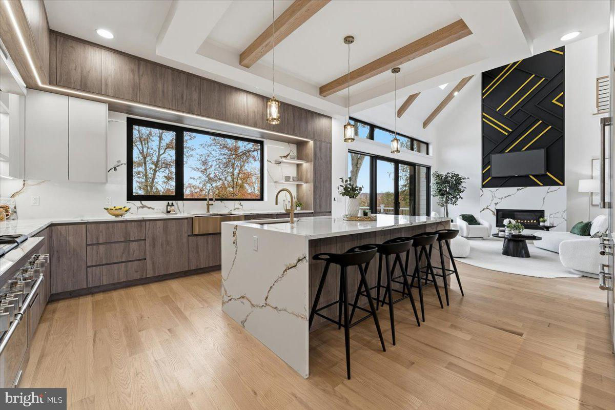 Experience Modern Luxury Redefined in this Stunning Masterpiece, Built and Designed by the renowned NJGCB, an award winning leader in Modern Architecture. Nestled at the end of a quiet cul-de-sac, this New Construction home offers up both privacy & breathtaking water and golf course views. Thoughtfully designed w/ exceptional craftsmanship, this custom home features 6 beds, 6.1 baths, 3 Car spanning over 6,700 sq ft of finished living space. Grand foyer welcomes you with massive floor to ceiling windows, floating staircase & herringbone HW floors. The heart of this home is your gourmet kitchen, where every element was meticulously crafted. Professional grade SS appliances, an abundance of sleek custom cabinetry, center island & walk-in Pantry. Kitchen opens to an impressive 2 story Family Rm w/gas FP, soaring ceilings, skylights & oversized sliding doors leading to outdoor deck, perfect for Entertaining. Elegant butler's pantry connects kitchen w/ Formal Dining Room, blending luxury with functionality. A First Floor Guest Suite offers convenience & accessibility. A beautifully appointed Primary Retreat w/ Covered Balcony, Custom Closets & Spa Inspired Bath w/dual showers & soaking tub. Three additional En Suite Beds & Laundry. Above Ground walk-out basement, filled with sunlight includes Media Rm, Bedroom, Bath, Gym, Office, Wet Bar & Rec Room. Two sets of Sliding Doors leads to paver patio & fenced in yard w/room & approvals for future pool. Luxury Living at its Best.